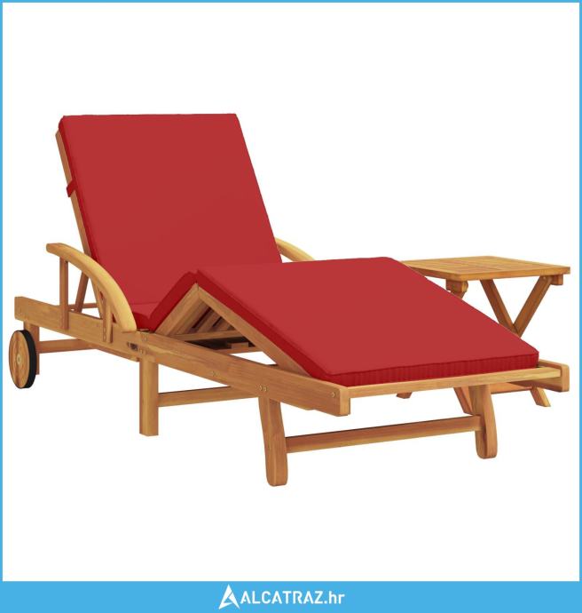 ležaljka s jastučićem i stolom od crvene akacije, sklopiva ležaljka s