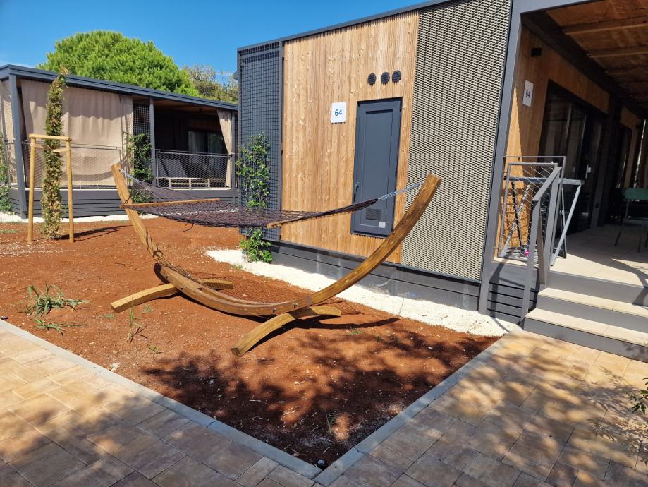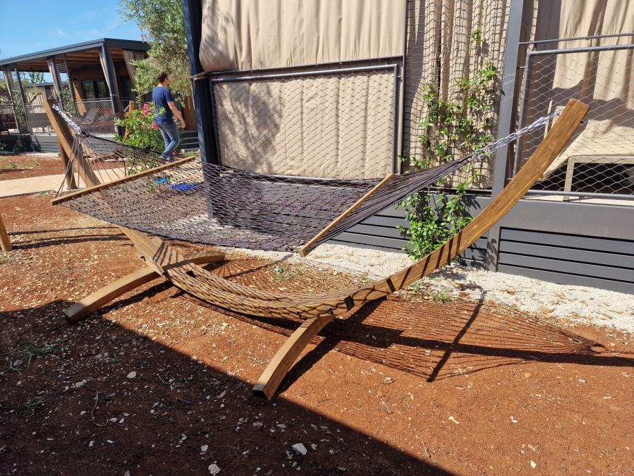 Čvrst drveni okvir izrađen od lameliranog drva smreke donosi jednostavan, a elegantan izgled – poruka “Ovo je najopuštenije mjesto u dvorištu!” zahvaljujući pažljivo oblikovanim linijama i toplim prirodnim materijalima.