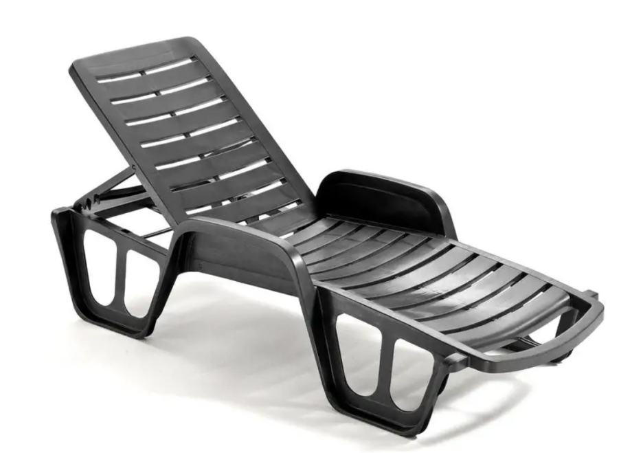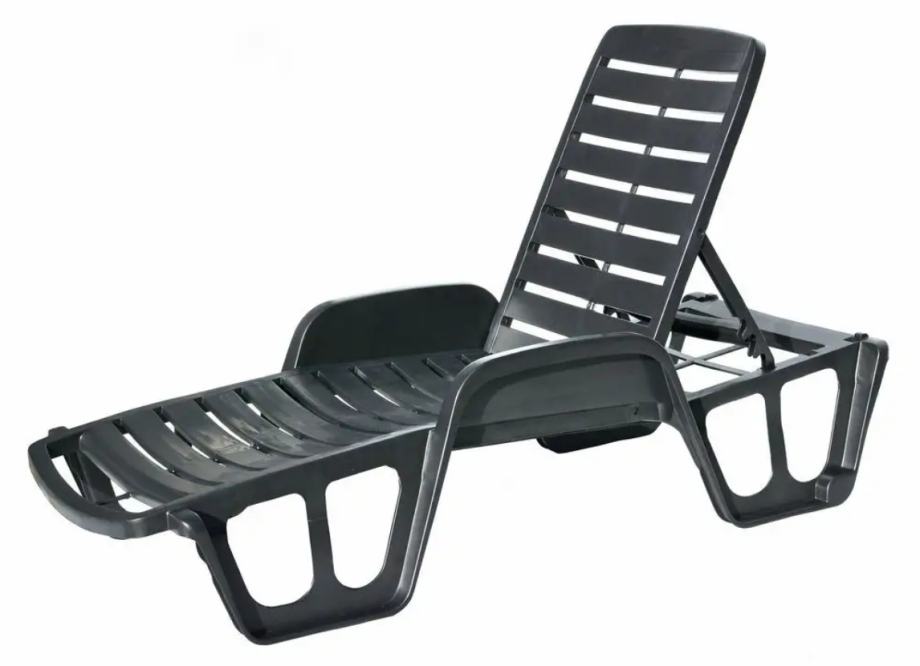 Plastična konstrukcija, pogodna za vrt, balkon ili terasu Otporan materijal za jednostavno održavanje. Sklopivi dizajn. Možete podesiti nagib naslona na nekoliko razina. Nosivost do 120 kg. Masa 13,3 kg. Dimenzije 71 × 100 × 192 cm Dostupno u grafitnoj boji.