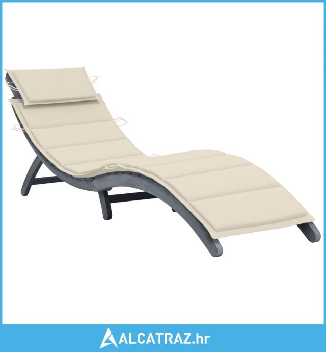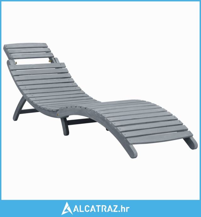 Ležaljka za sunčanje s jastukom siva masivno bagremovo drvo - NOVO
