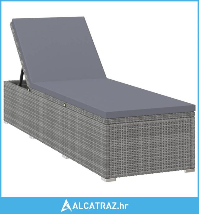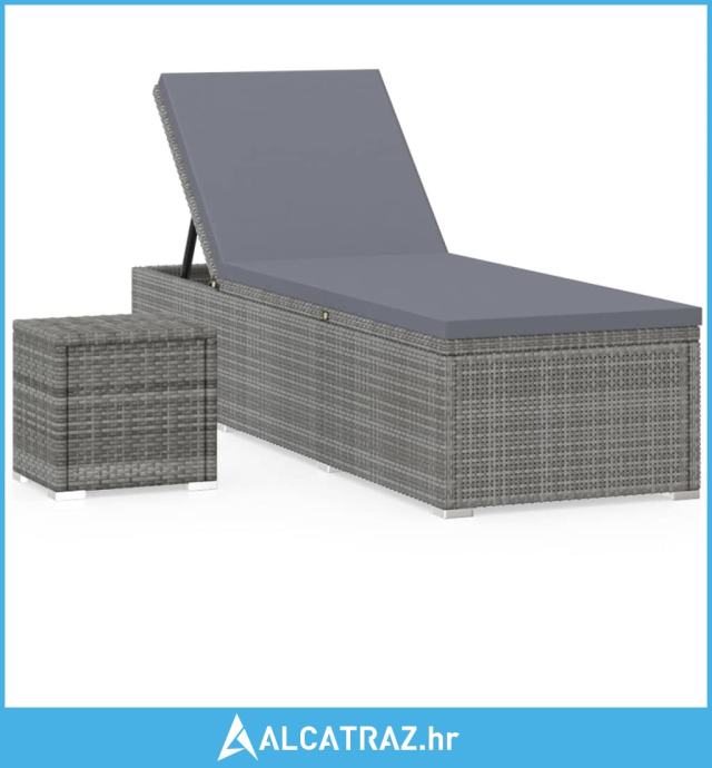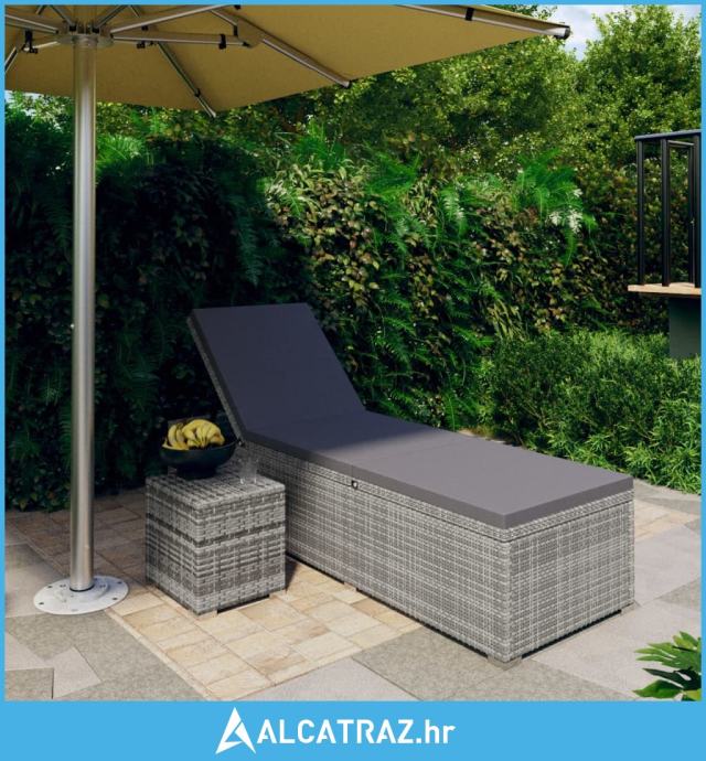 Ležaljka za sunčanje s jastukom i stolićem od poliratana siva - NOVO