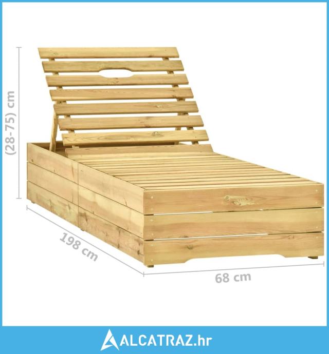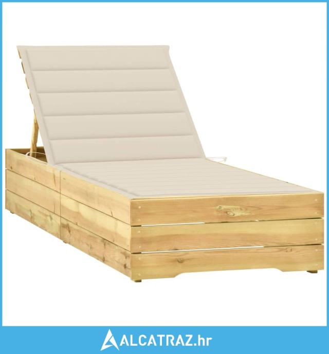 Ležaljka za sunčanje s krem jastukom od impregnirane borovine - NOVO