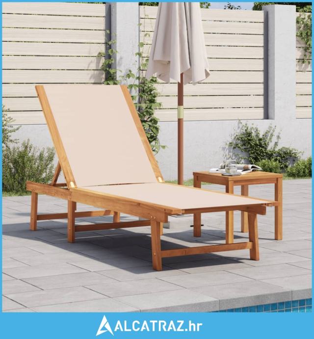 Ležaljka za sunčanje krem od masivnog drva bagrema i tekstilena - NOVO