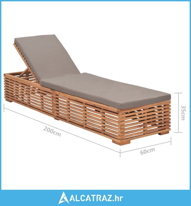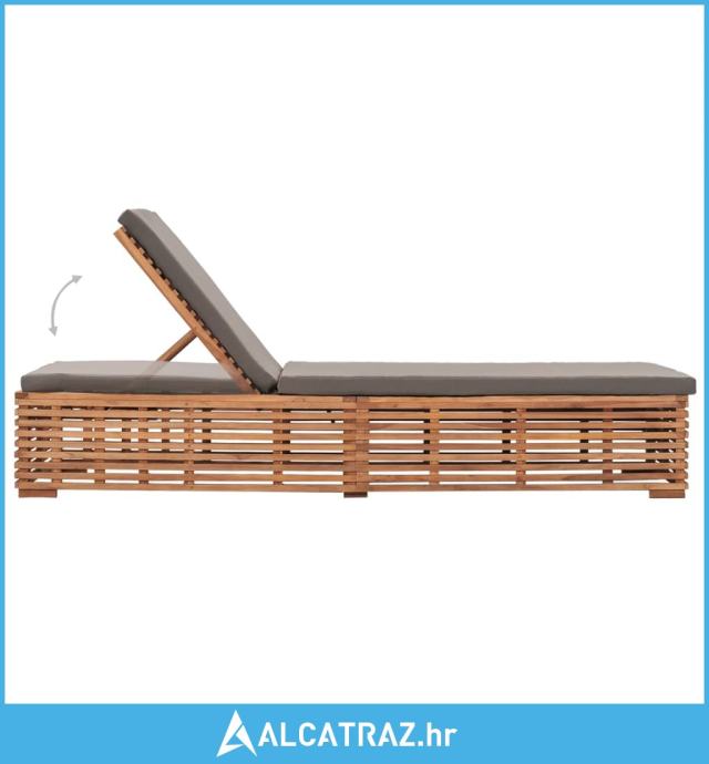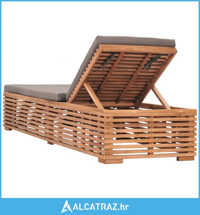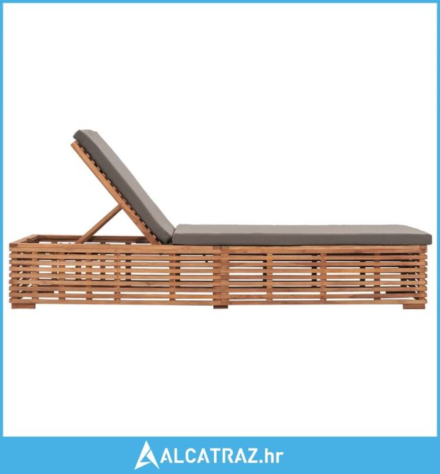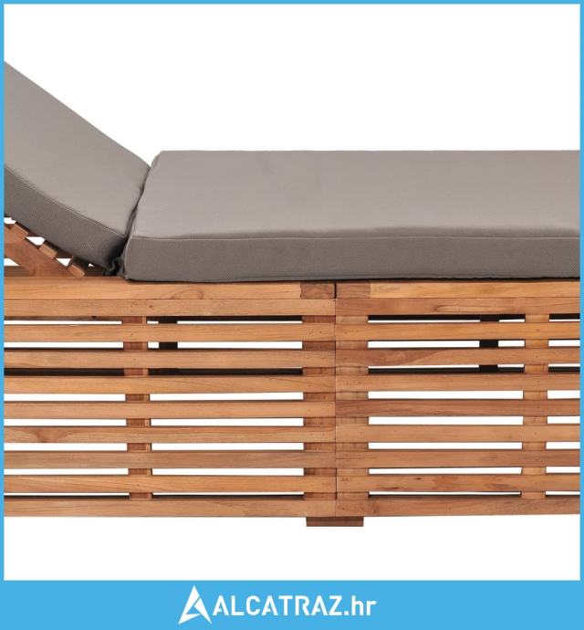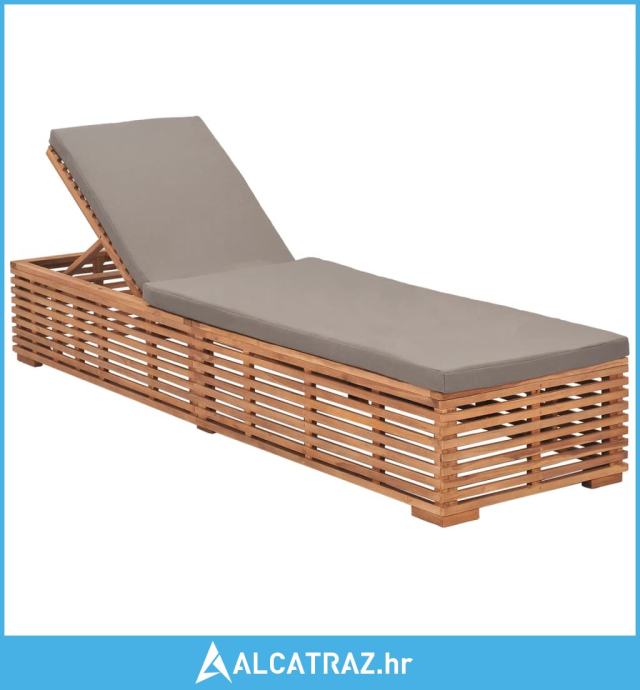 Ležaljka za sunčanje od masivne tikovine s tamnosivim jastukom - NOVO
