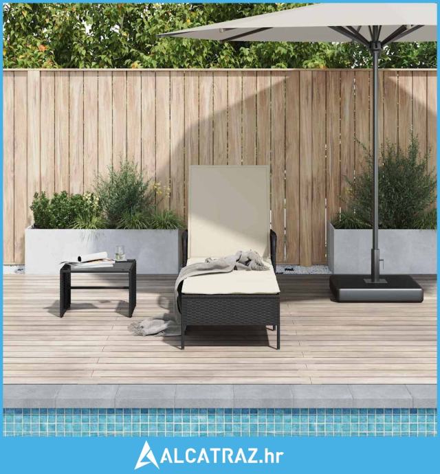 ležaljka na suncu crna i krem bijela PE ratan 157 x 55 x 92 cm - NOVO