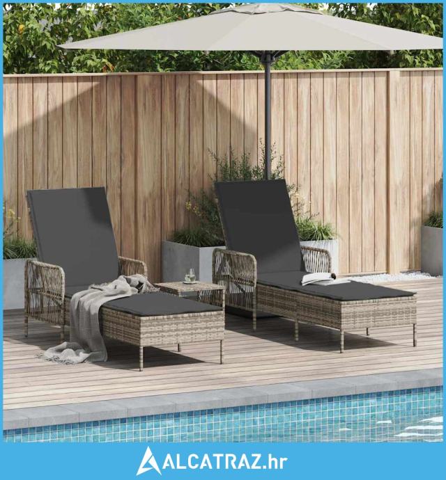 ležaljka na suncu Set od 3 Svijetlosiva i tamnosiva PE ratan, metal -