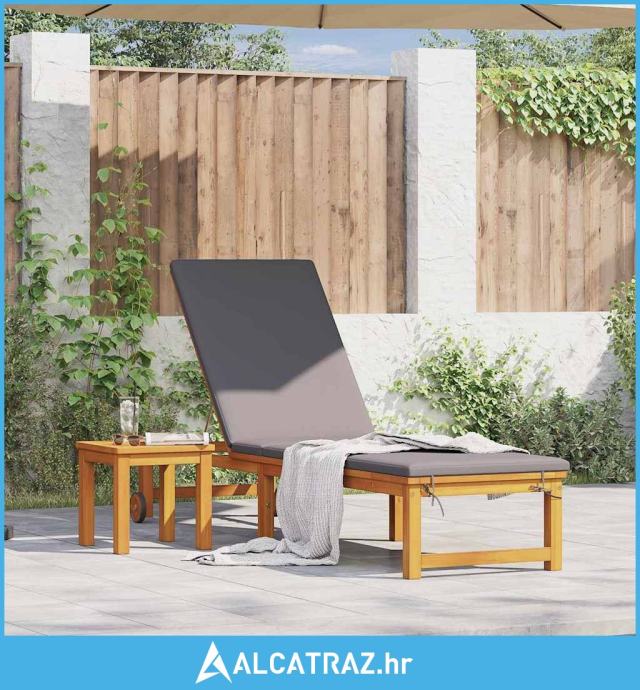 ležaljka na suncu sa svijetlosivim jastučićima od čvrstog drva akacije