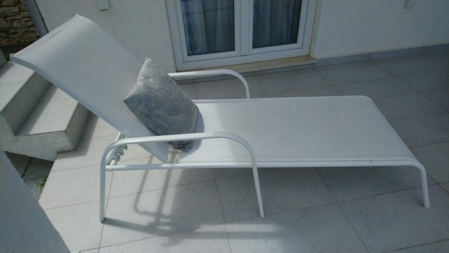 Lezaljka vanjska za terasu i dvoriste. Metalni okvir i cvrsto platno. Prefarbana bijelom bojom.