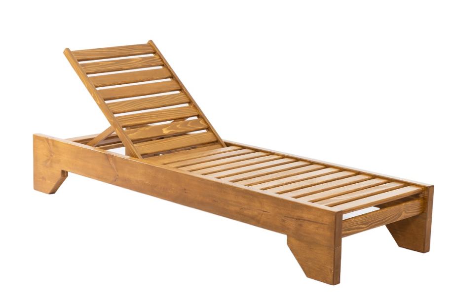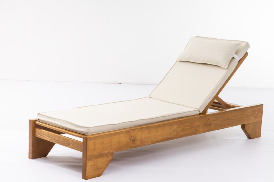 Drvene ležaljke izuzetnog kvaliteta izrađene od sušenog bora dimenzije 200x65x30cm. Bočne strane 14x4cm u kojima je urađeno ležište dubine 15mm za svaku letvicu što joj daje izuzetnu čvrstinu. Lepi se vodootpornim lepkom i dodatno se šrafi a da se pritom nigde ne vidi šraf. Zaštita je impregnant a nakon toga lazura UV otporna. Dušek je od vodoodbojnog materijala uz koji ide i mali jastuk.
