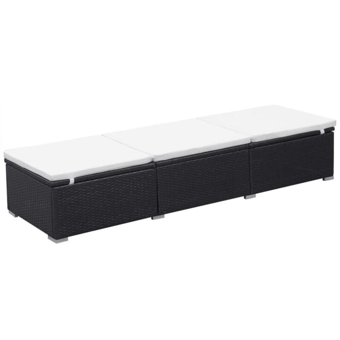 Zahvaljujući vodootpornom ratanu od PE-a, set ležaljki za sunčanje jednostavan je za čišćenje, izdržljiv i prikladan za svakodnevnu uporabu. Ležaljke i stol imaju čvrst okvir od čelika obloženog prahom, što ih čini vrlo stabilnima i izdržljivima. Obje strane ležaja mogu se povući prema gore i namjestiti u različite položaje za najudobnije sjedenje ili ležanje. Gusto podstavljeni, odvojivi jastuci s pjenastim punjenjem pružit će vrhunsku udobnost. Poliesterske navlake za jastuke koje se lako održavaju mogu se jednostavno ukloniti i oprati. Možete držati svoja pića, telefone, knjige ili druge manje predmete na dohvat ruke na bočnom stolu. Isporuka uključuje 2 ležaljke za sunčanje, 1 stol i 2 velika jastuka za sjedala. Ovaj set lako se sastavlja.