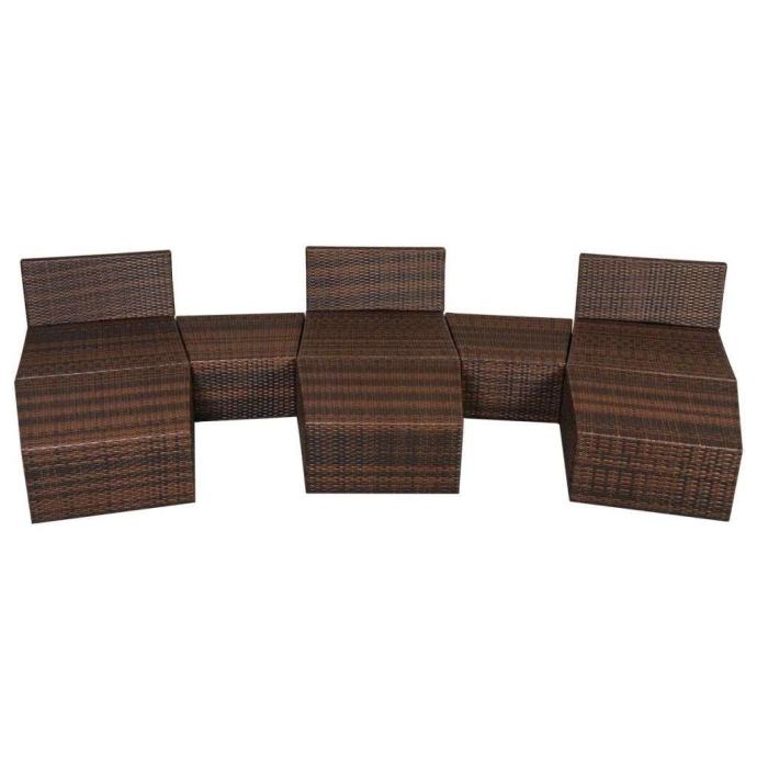 Ovaj modularni set vrtnog namještaja od poliratana kombinacija je estetike i funkcionalnosti, te će privlačiti poglede u vašem vrtu ili na terasi. Set je dizajniran za upotrebu na otvorenom tijekom cijele godine. Zahvaljujući PE ratanu otpornom na vremenske utjecaje i vodu, ovaj lounge set jednostavan je za čišćenje, iznimno otporan i pogodan za svakodnevnu upotrebu. Okvir namještaja usavršen je procesom elektrostatičnog premazivanja što ga čini izdrživim. Također je vrlo lagan, modularan i fleksibilan, te samim time jednostavan za premještanje i prilagodiv svakom prostoru. Set je moguće formirati kao vrtnu sofu ili trostruku ležaljku, ali i u mnoge druge oblike. Gusti jastučići iznimno su ugodni te se mogu micati. Isporuka uključuje 3 elementa za sjedenje, 2 stola, 3 taburea, 8 jastučića za sjedenje, 3 jastučića za naslon i 3 jastučića za donji dio leđa.