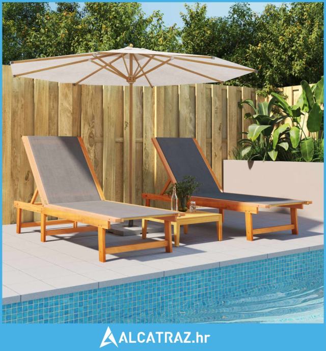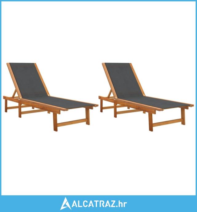 Ležaljke za sunčanje 2 kom crne od drva bagrema i tekstilena - NOVO