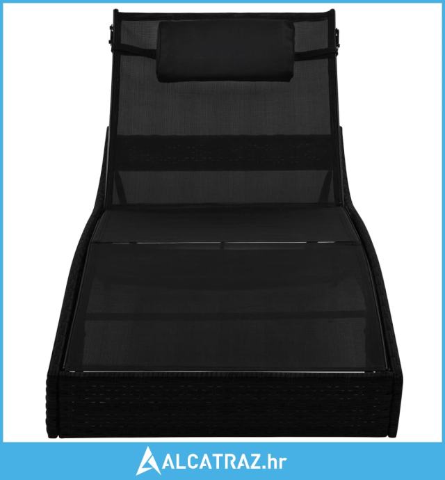 Ležaljke za sunčanje 2 kom sa stolom poliratan i tekstilen crne - NOVO