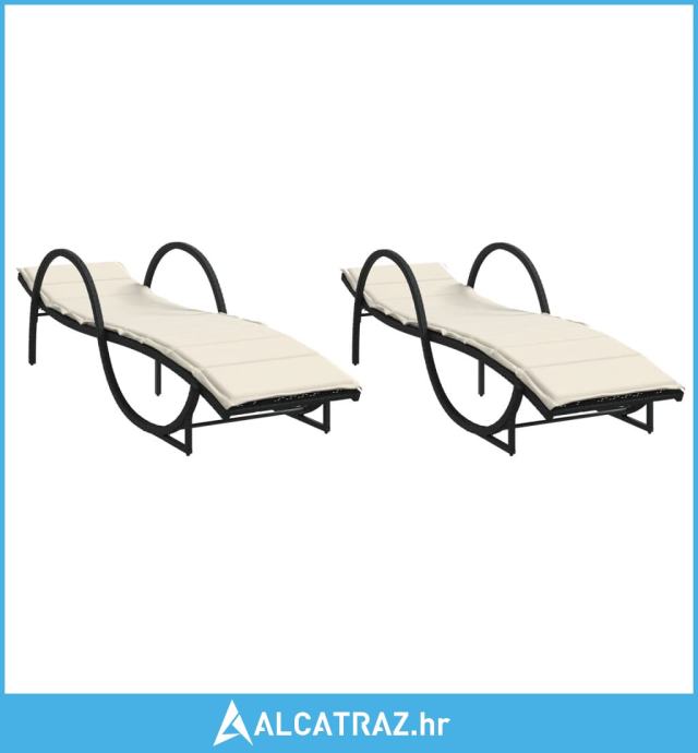 Ležaljke za sunčanje s jastucima 2 kom crna od poliratana - NOVO