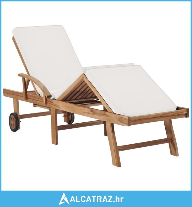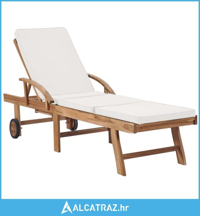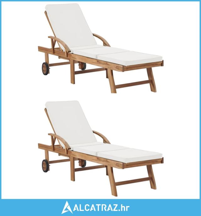 Ležaljke za sunčanje s jastucima 2 kom od masivne tikovine krem - NOVO