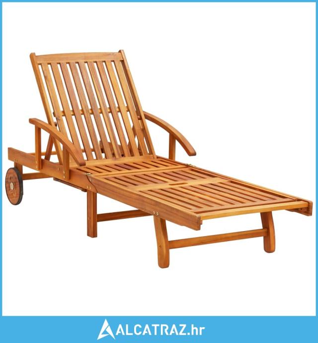 Izrađena od masivnog bagremovog drva, ležaljka za sunčanje otporna je na vremenske uvjete, izdržljiva i prikladna za vanjsku upotrebu. Budući da je opremljena kotačima, lako se pomiče. Naslon za leđa i oslonac za noge mogu se podesiti od potpuno uspravnog sjedenja do potpuno ravnog ležanja, što vam nudi najveću udobnost. Ovaj dnevni ležaj može se sklopiti kad se ne upotrebljava. Priloženi jastuk više je od praktičnog dodatka – također ima ukrasnu funkciju.
