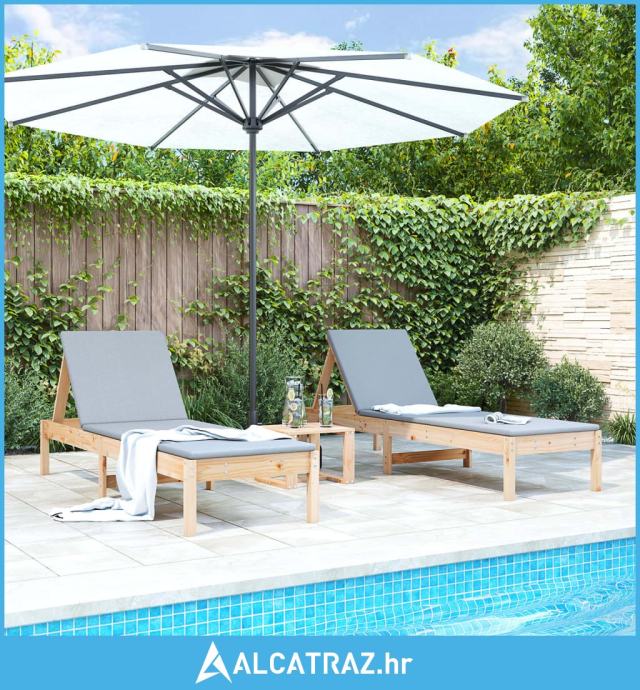 Ležaljke za sunčanje sa stolićem 2 kom od masivne borovine - NOVO