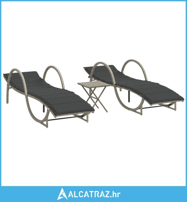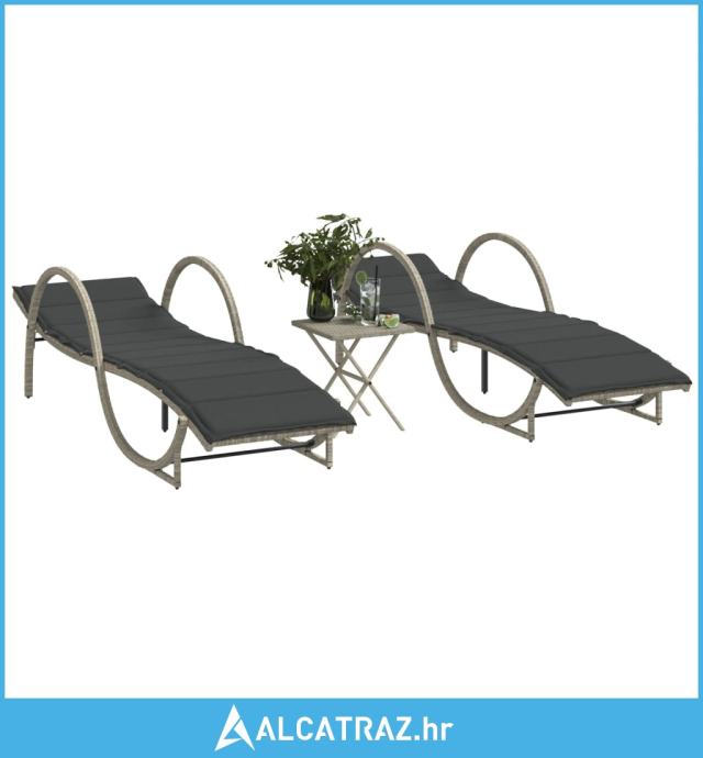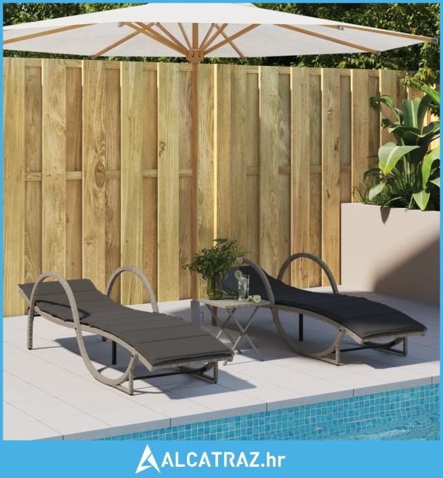 Ležaljke za sunčanje sa stolićem 2 kom svjetlosive poliratan - NOVO