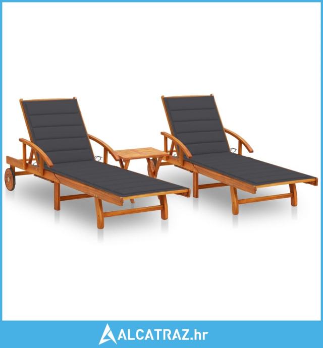 Ležaljke za sunčanje sa stolićem i jastucima 2 kom drvo bagrema - NOVO