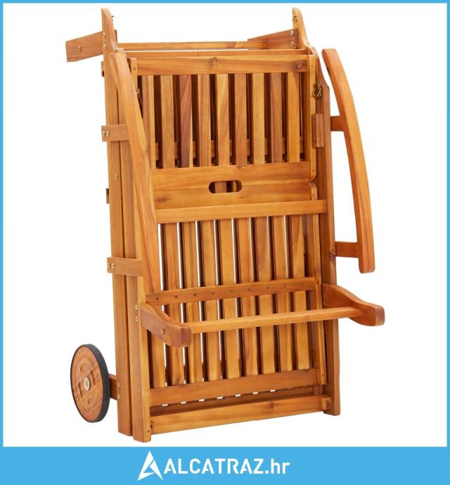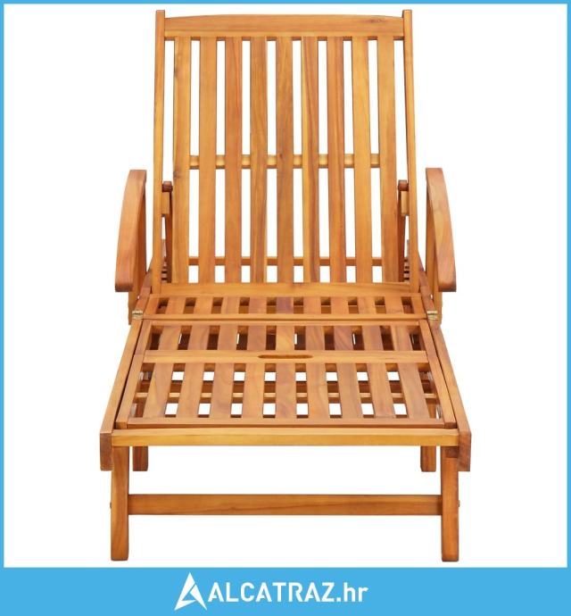 Izrađena od masivnog bagremovog drva, ležaljka za sunčanje otporna je na vremenske uvjete, izdržljiva i prikladna za vanjsku upotrebu. Budući da je opremljena kotačima, lako se pomiče. Naslon za leđa i oslonac za noge mogu se podesiti od potpuno uspravnog sjedenja do potpuno ravnog ležanja, što vam nudi najveću udobnost. Ovaj dnevni ležaj i stolić mogu se sklopiti kad se ne upotrebljavaju. Priloženi jastuk više je od praktičnog dodatka – također ima ukrasnu funkciju.
