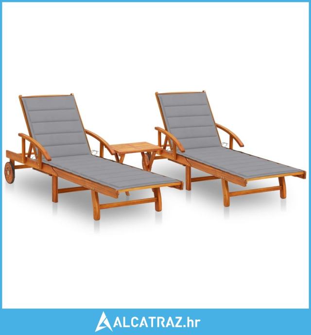 Ležaljke za sunčanje sa stolićem i jastucima 2 kom drvo bagrema - NOVO