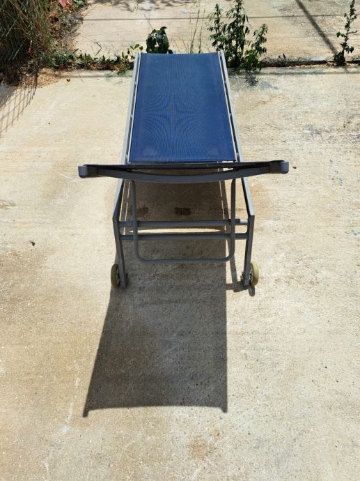 Lezaljke na kotacicima- mobilne, sa regulacijom naslona u 5 polozaja. Konstrukcija aluminjska sa sa platnom. 10kom na prodaju.