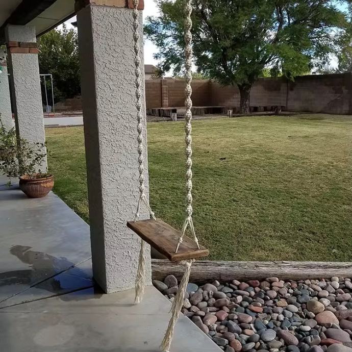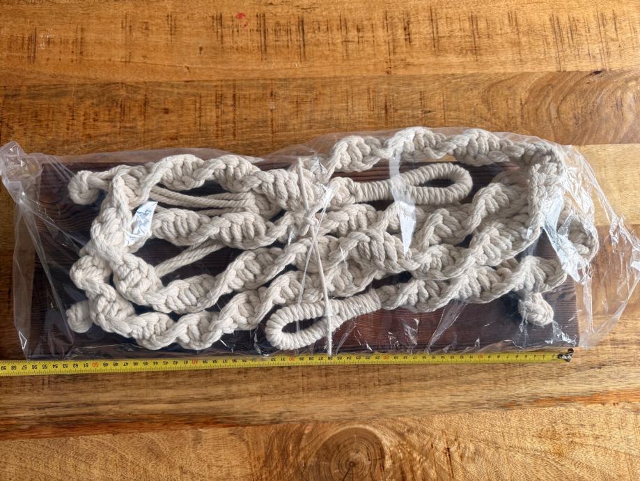 Prodajem novu ljuljačku u boho makrame stilu. Sjedalo je izrađeno od drveta tamnije boje, a konopi su ručno rađeni u makrame tehnici s karakterističnim čvorovima koji daju rustikalan i prirodan izgled. Ljuljačka dolazi zapakirana i spremna za montažu. Savršena za svakodnevno korištenje, photosession i kao poklon!