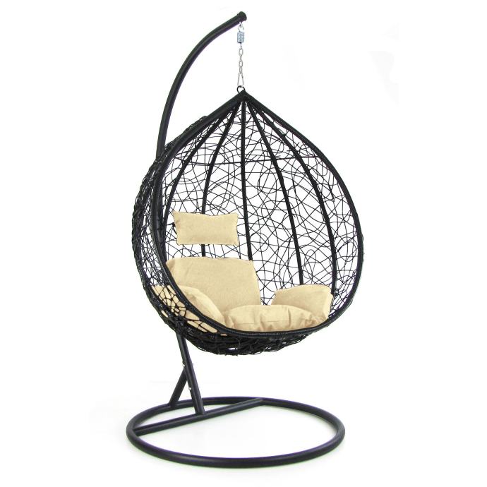 Luksuzna viseća stolica ljuljačka košara od poliratana s okvirom crni