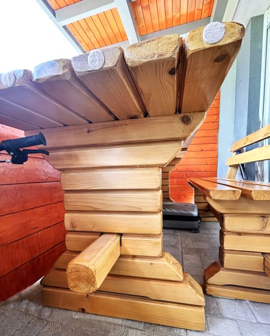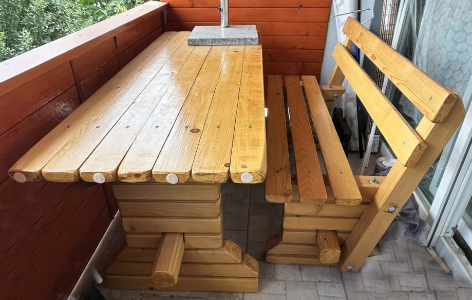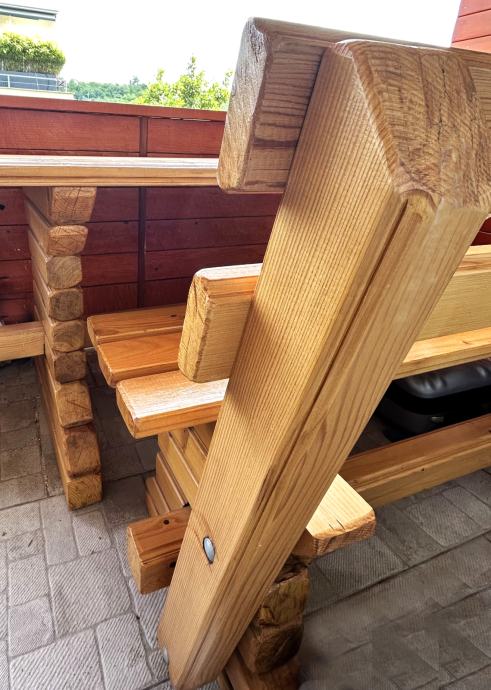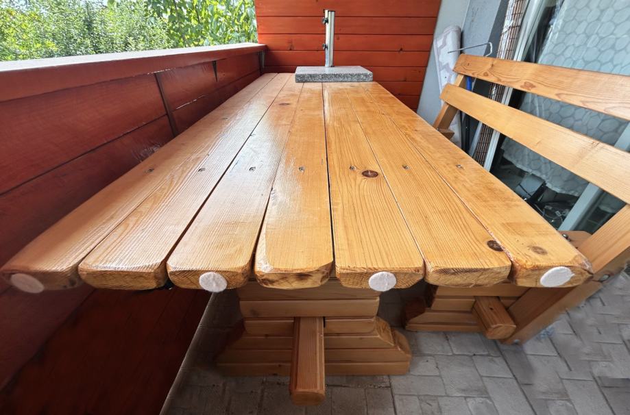 Prodajem stol i dvije klupe od masivnog lakiranog drva. Garnitura je korištena samo u unutarnjem prostoru i jako dobro je očuvana, a idealna je za vanjski prostor.