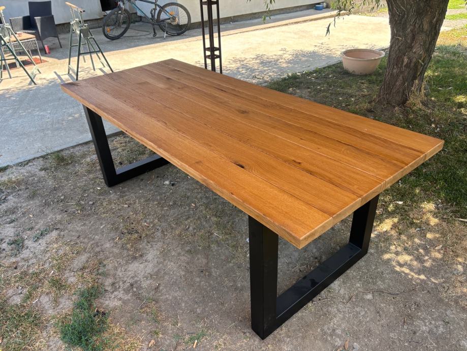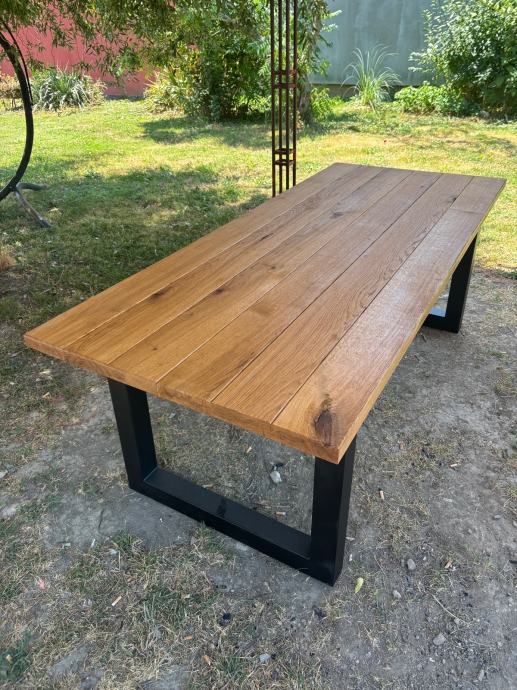 Prodajem elegantan i čvrst ručno rađeni stol, idealan za vrt, terasu ili interijer. Gornja ploča izrađena je od kvalitetnog masivnog hrastovog drva, s prirodnim uzorkom i rustikalnim šarmom. Drvo je pažljivo obrađeno, zaštićeno lakom te je izuzetno otporno i dugotrajno.