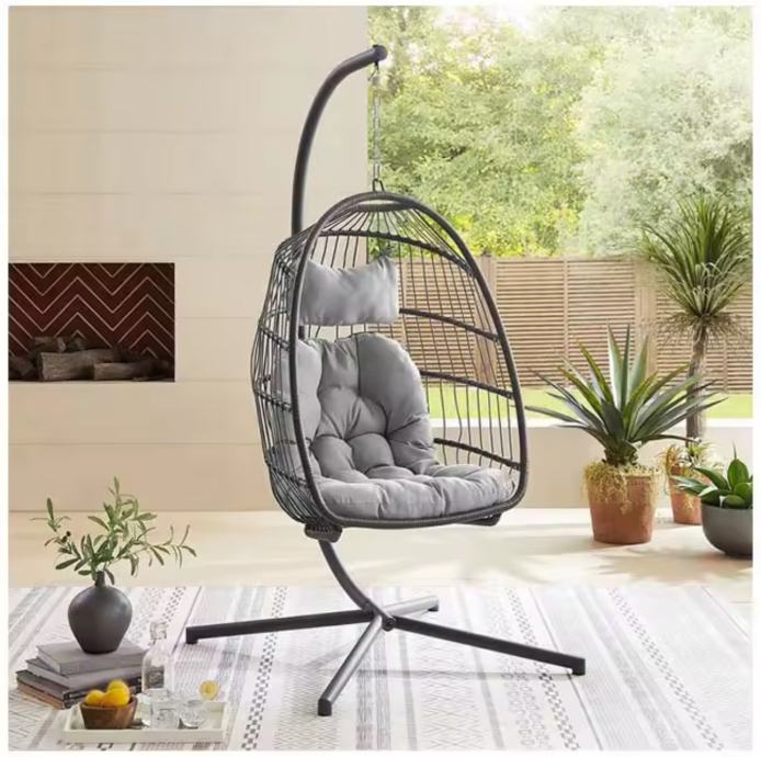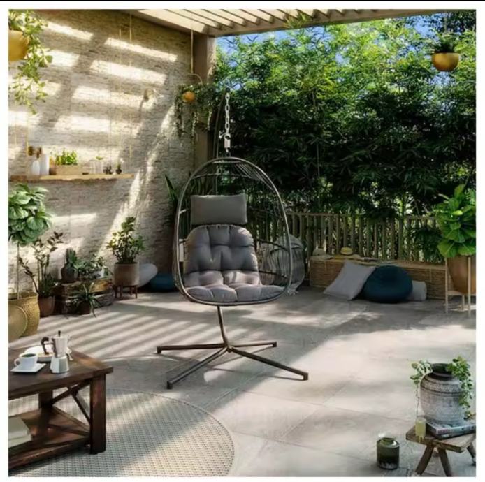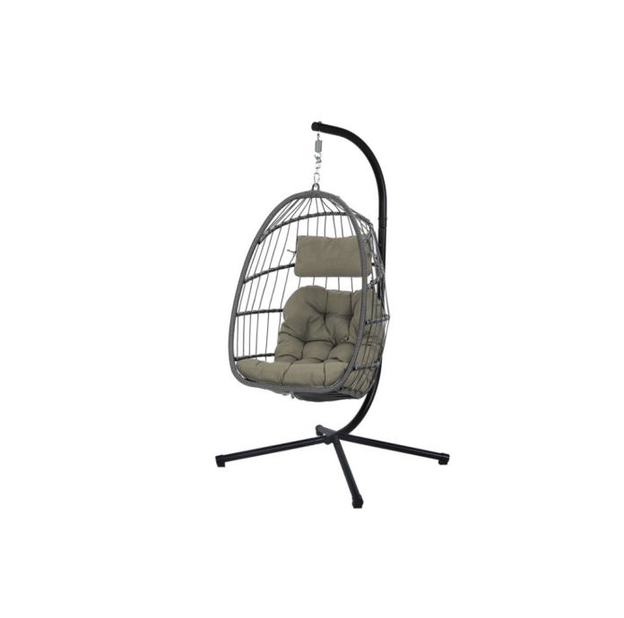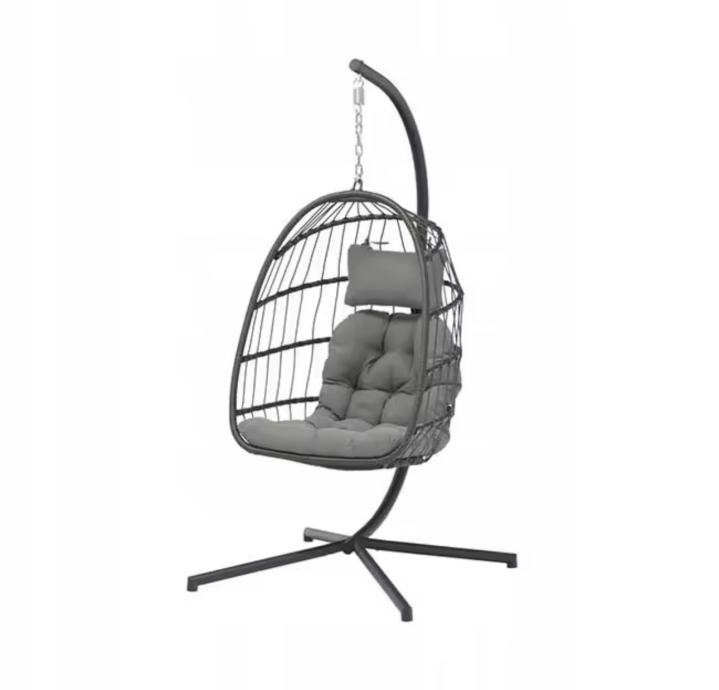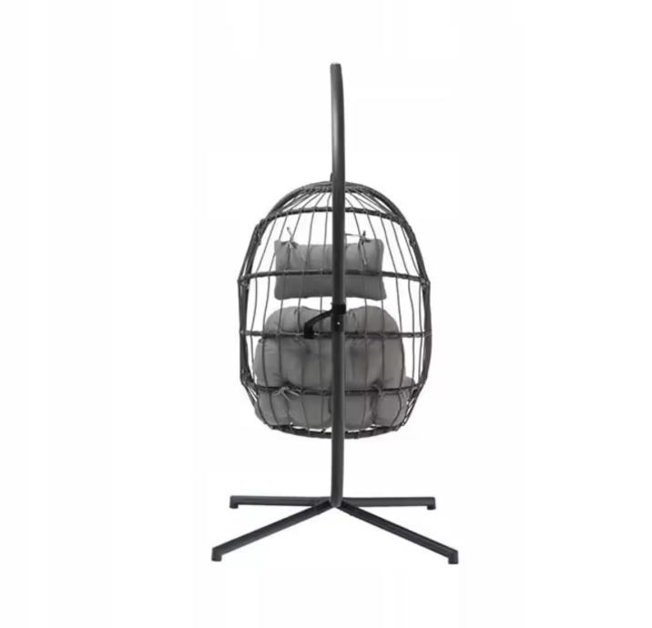 Metalna viseća stolica Orta jajastog oblika savršena je kombinacija modernog dizajna i udobnosti. Košara dimenzija 63x73,5x109 cm, zajedno s čvrstim metalnim okvirom, pruža stabilnost i dugotrajnost, nosivosti 120 kg. Izrađena je s ravnom prućom i pletenim poliesterskim konopom, dok tkanina od 180 g poliestera osigurava otpornost na vanjske uvjete. Stolica dolazi s jednodijelnim jastukom i dodatnim jastukom za glavu u neutralnoj boji (OD-01-22), pružajući vrhunsku udobnost. Metalni okvir s praškastim premazom jamči trajnost i elegantan izgled, idealno za terase, vrtove ili unutarnje prostore.
