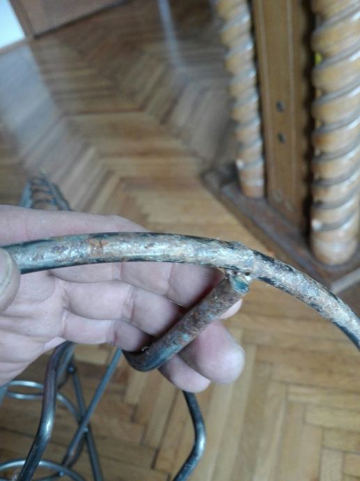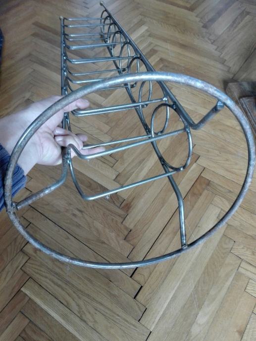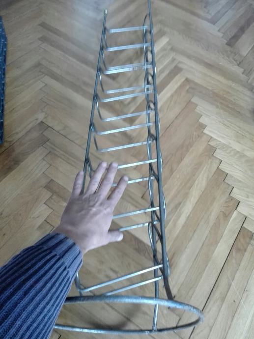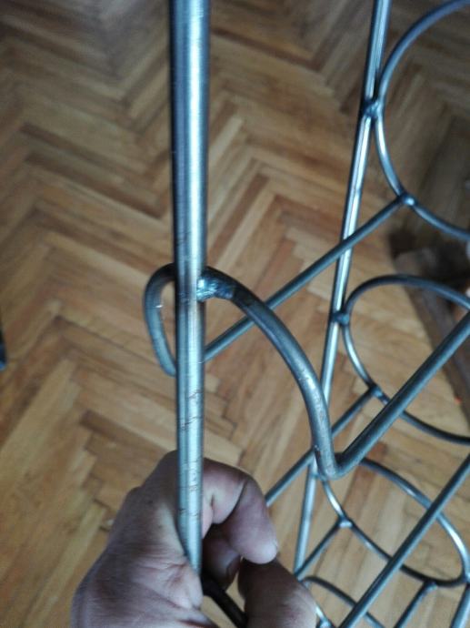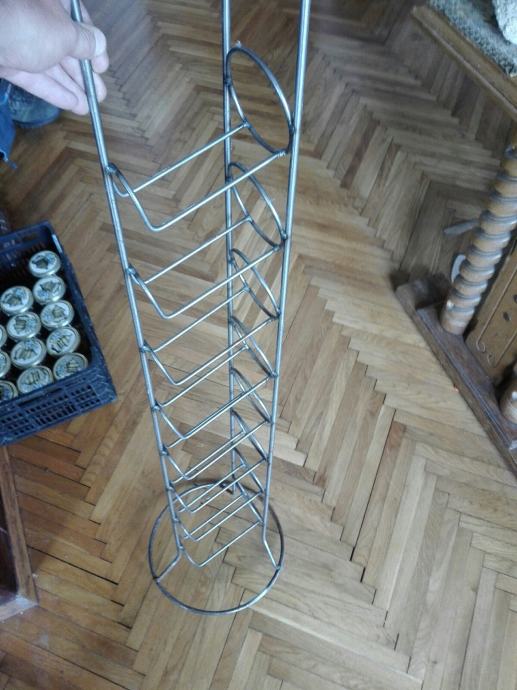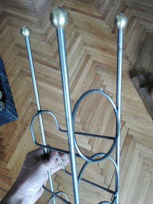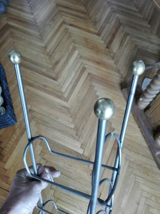 Metalni stalak za vino, tj butelje. Visina 110 cm. Tri kugle na vrhu su od mesinga. Debljina metala: okomiti 4mm, ostali 3mm. Ima sitno korozije( pokazujem na fotki). Cijena je fiksna. Na SMS nemogu odgovoriti, najbolje bi bilo da me nazovete 099 687 5657 ili pošaljete poruku preko Njuškala.