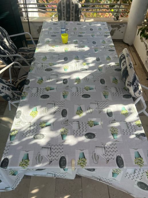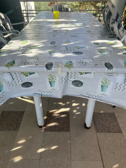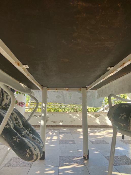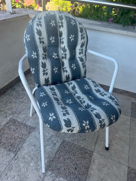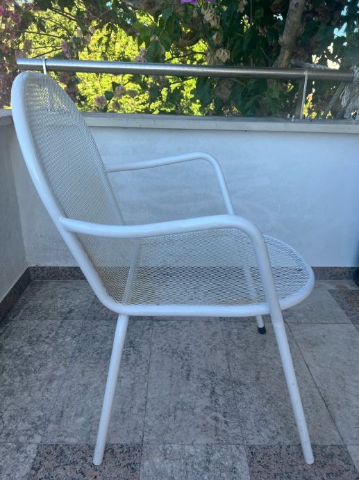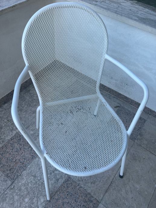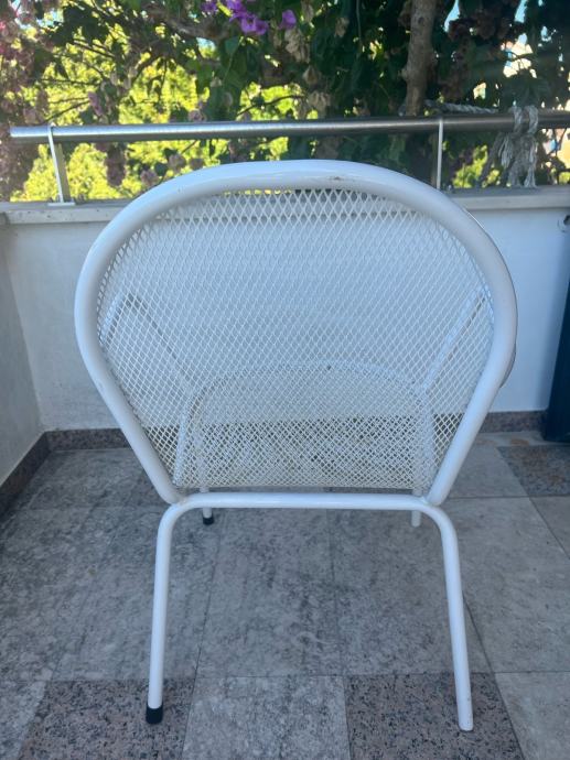 Prodajem stabilne metalne stolce s naslonom i rukonaslonom u bijeloj boji s jastucima, ukupno 8 komada, cijena jednog 45€. Također, u kompletu prodajem i metalni plastificirani stol dimenzija 85*190 cm čija je cijena 190€.