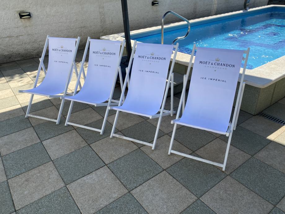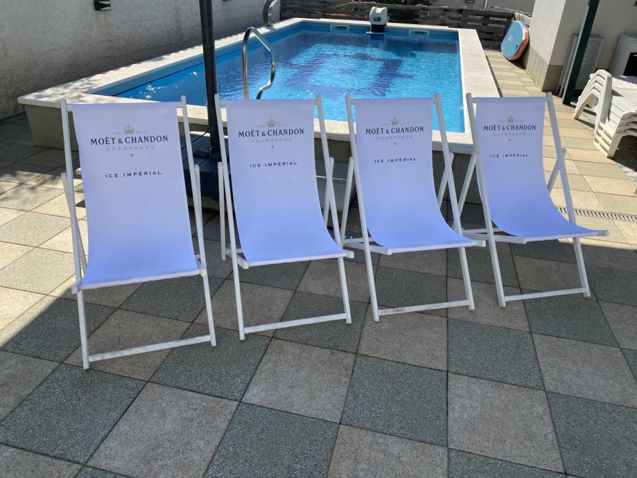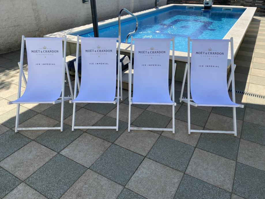 Moet Chandon Champagner Ice Imperial 4x Strandstuhl - Liegestuhl - Strandliegestuhl in einem sehr guten gebrauchten Zustand.