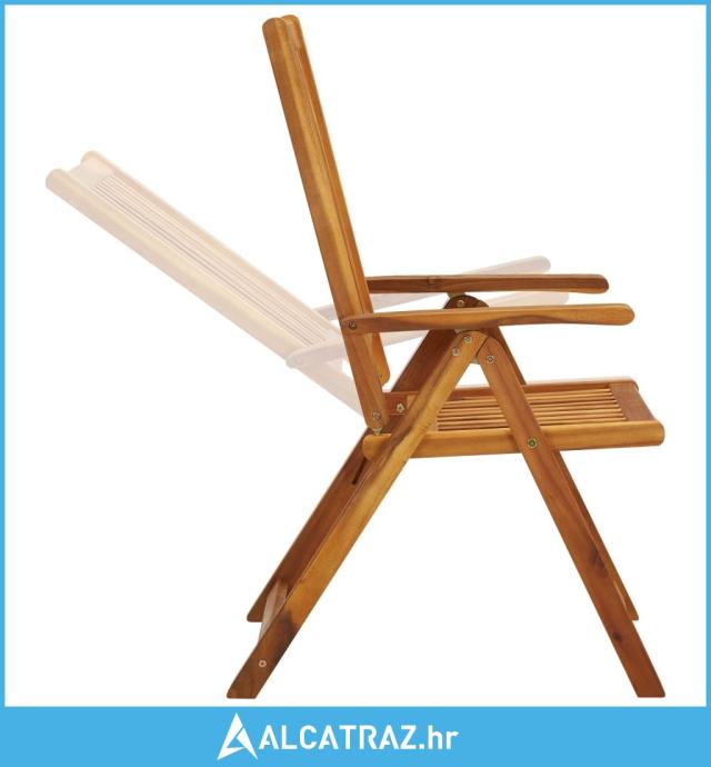 Ovaj set nagibnih stolica napravljen je od masivnog drva bagrema s uljnim premazom, koje je tvrdo drvo s gustim godovima. Grubo bagremovo drvo ima snagu da podnese težinu i također može izdržati trošenje uzrokovano vremenom. Ovaj set drvenih stolica otporan je na vremenske utjecaje, zbog čega osigurava dugogodišnju upotrebu. Zahvaljujući površini premazanoj uljem, stolice se lako čiste vlažnom krpom. Uz to, nasloni stolica mogu se podesiti u 5 nagnutih položaja, što vam omogućuje da uvijek pronađete najugodniji položaj.