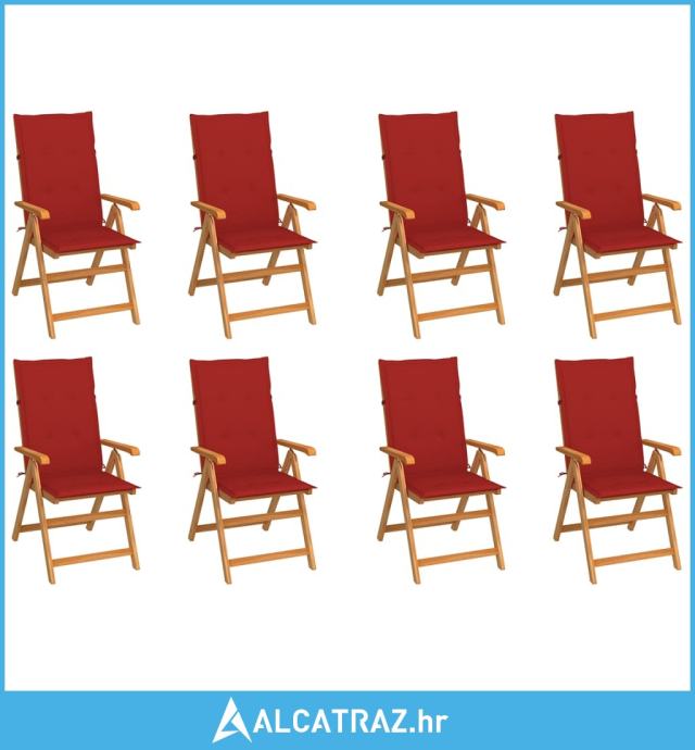 Nagibne vrtne stolice s jastucima 8 kom od masivne tikovine - NOVO