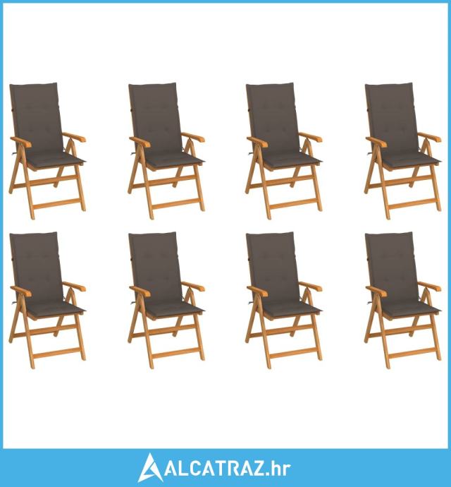 Nagibne vrtne stolice s jastucima 8 kom od masivne tikovine - NOVO
