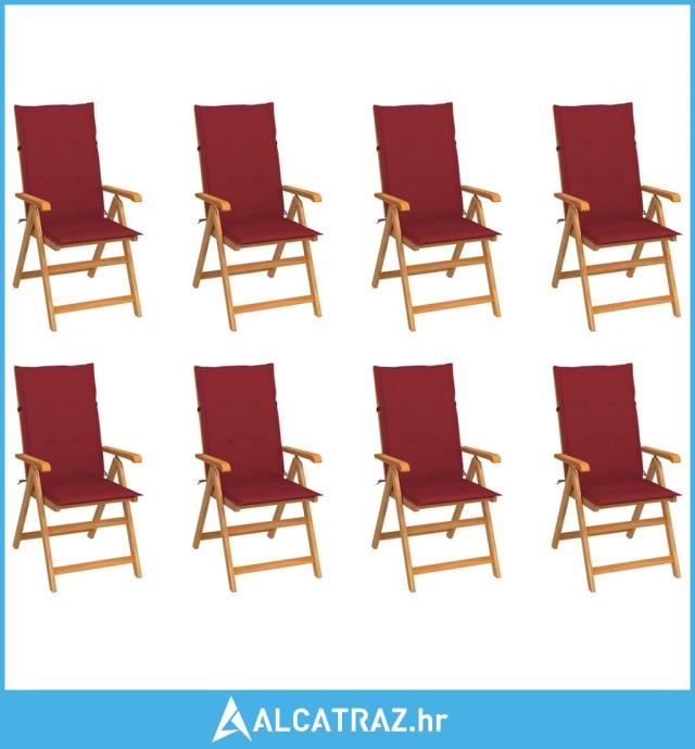 Nagibne vrtne stolice s jastucima 8 kom od masivne tikovine - NOVO