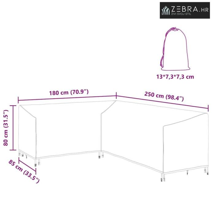 Ova L-obljetna zaštita je stvorena da štiti tvoje vanjske komade od lošeg vremena. Modernog je i stilskog izgleda, pa je odličan odabir za one koji cijene i stil i praktičnost na otvorenom. Izrađena od izdržljivog Oxford materijala, ova zaštita nudi dobru barijeru koja je otporna na sunce i vodu, tako da tvoj namještaj ostane zaštićen od kiše i jakog sunca. Savršena je za proljeće i ljeto, a njen L-oblik lako se prilagođava različitim postavkama namještaja, što je čini neophodnom za svaki vrt ili terasu.