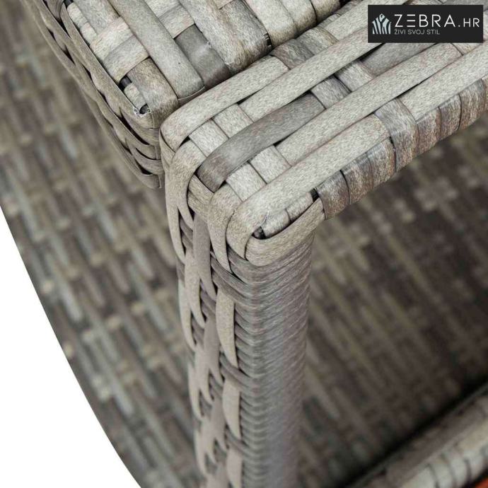 Okvir: Ratan od PE-a, okvir od čelika obloženog prahom, tropsko tvrdo drvo eukaliptusa