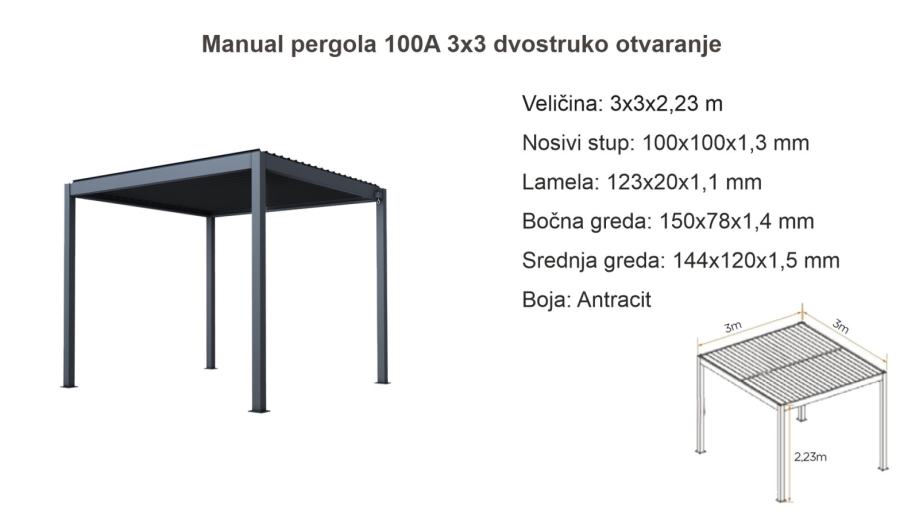 Pergola 100A 3x3 dvostruko otvaranje