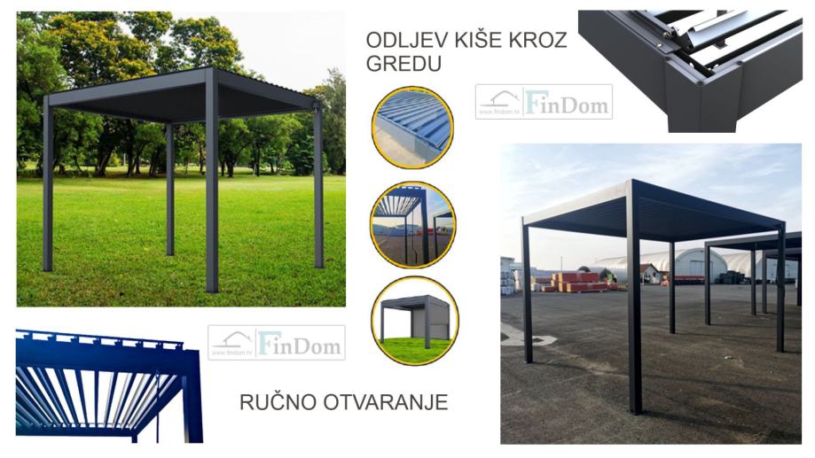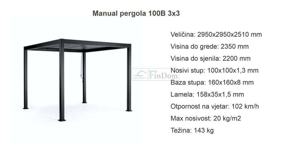 Pergola 100B otporna na vjetar, vodu i snijeg dolazi u dimezijama 3×3 metra.