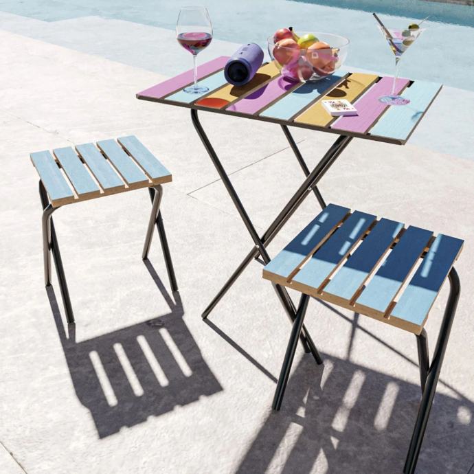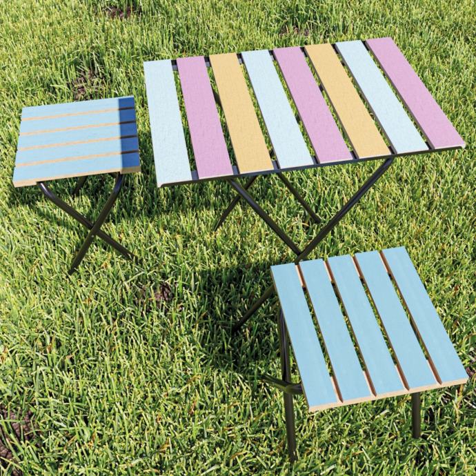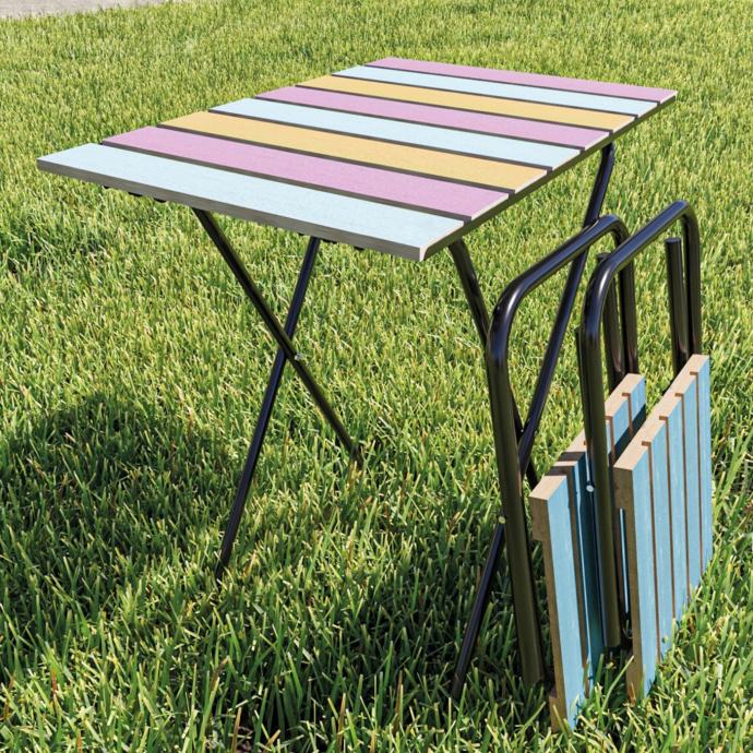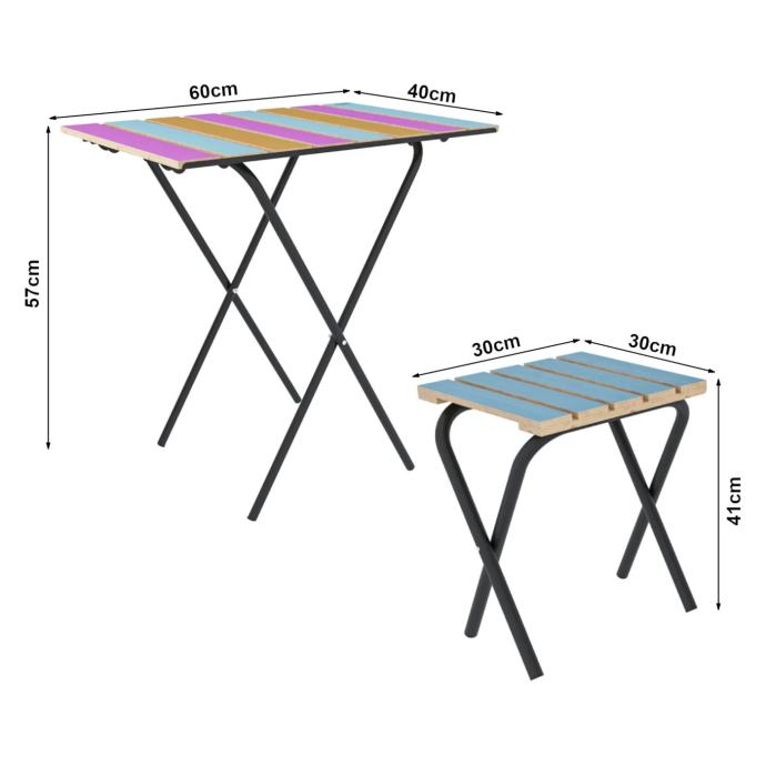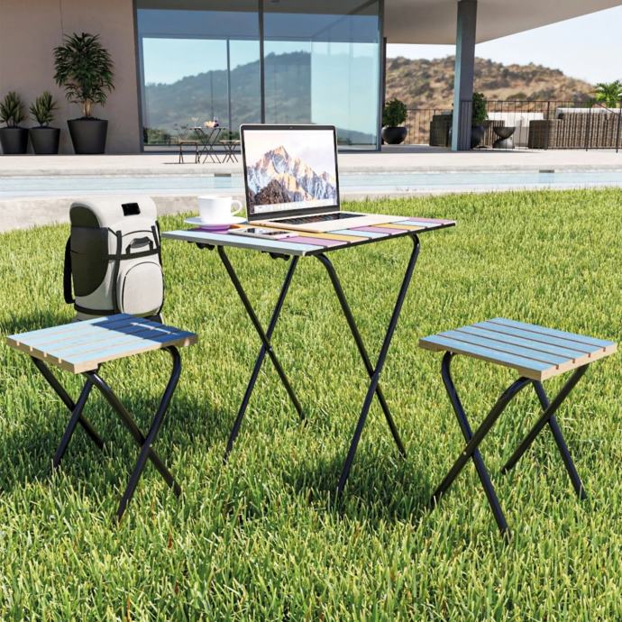 Metalna konstrukcija osigurava čvrstoću i stabilnost, dok su drvene površine ne samo izdržljive, već se i lako čiste – dovoljna je samo vlažna krpa. Zbog svoje svestranosti ovaj je set idealan za korištenje u vrtu, na terasi ili balkonu, a dobro služi i na kampiranju ili kao dodatak gostima kod kuće.