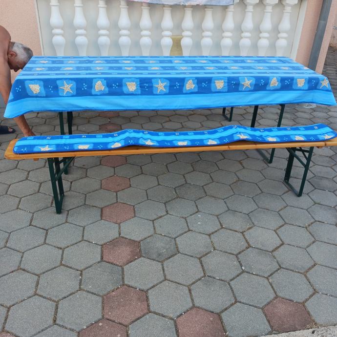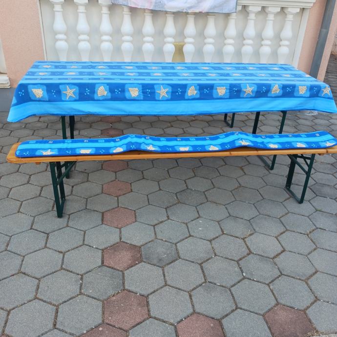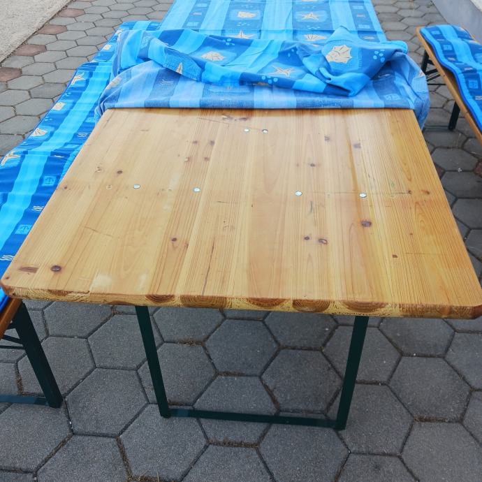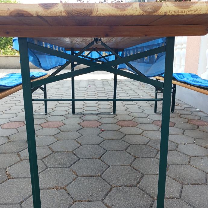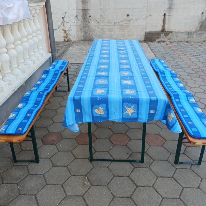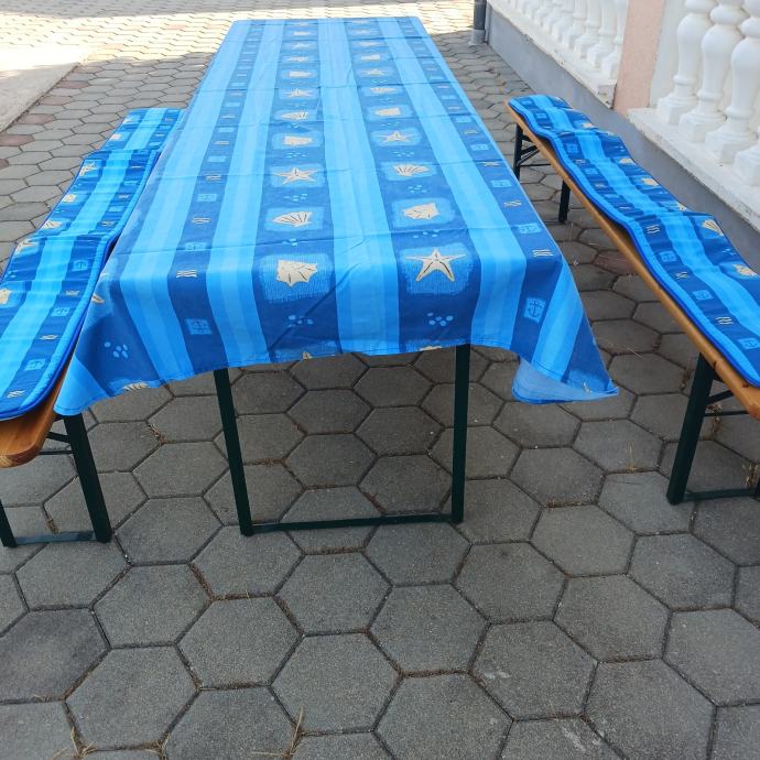 Prodajem pivsku garnitura 90x200 komplet sa stoljakom i spužvama za klupe. Kupljeno u Austriji, dodatno prelakirano. Korišteno jednom 3 sata.