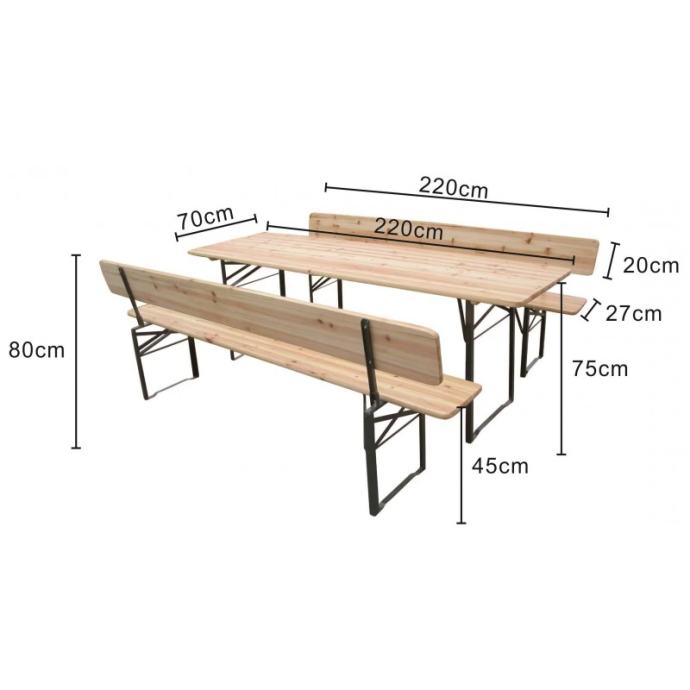 Pivski set od 3 dijela s naslonima, stol 220 x 70 cm, klupe 220 x 27 c