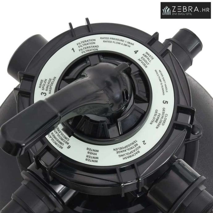 Višesmjerni ventil sa 6 položaja: filtar, povratno ispiranje, ispiranje, otpad, recikliranje i zatvoreno