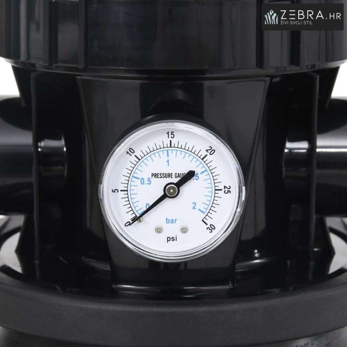 Lako očitavanje: Filtar za bazen ima ventil s više otvora za jednostavnu kontrolu i lako čitljiv manometar.