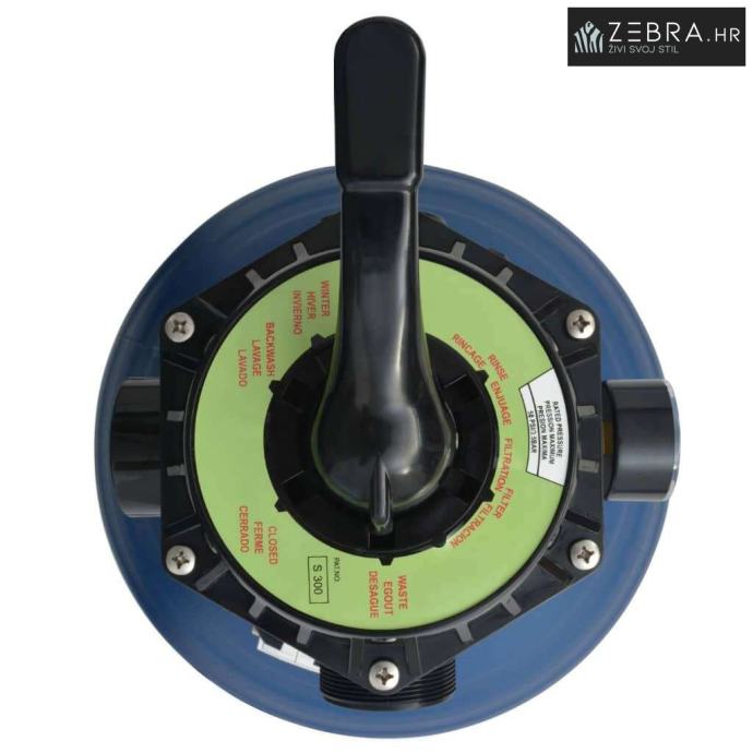 Višeputni ventil sa 6 položaja: filtriranje, povratno ispiranje, ispiranje, zimski, recirkuliranje i zatvoreni
