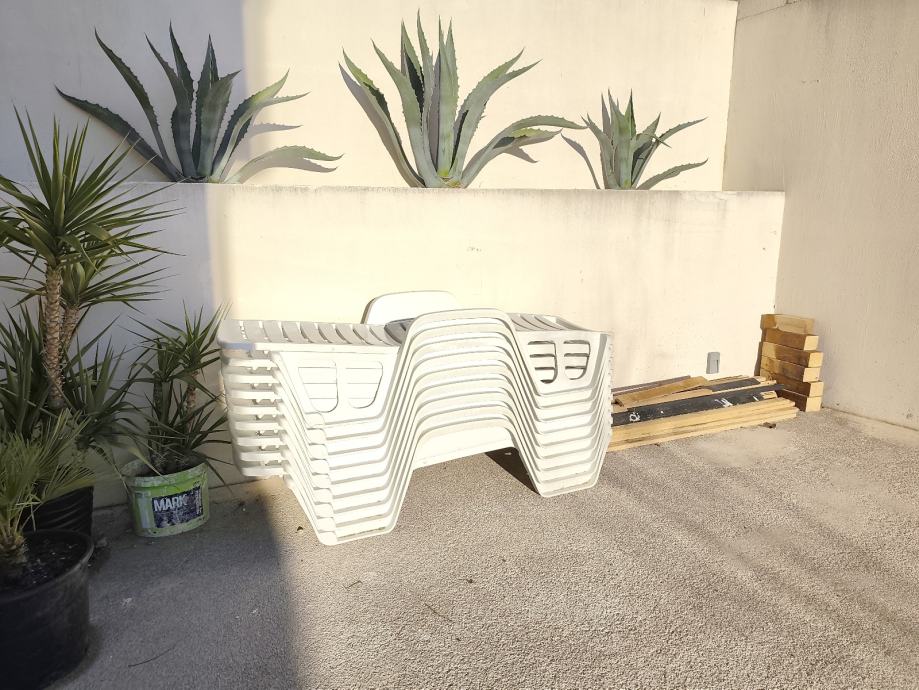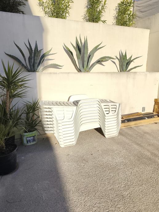Prodajem plastične ležaljke, 9 kom..Korištene kratko,dobro očuvane.. Lokacija Tugare, br. mob. 0911735926 Marin