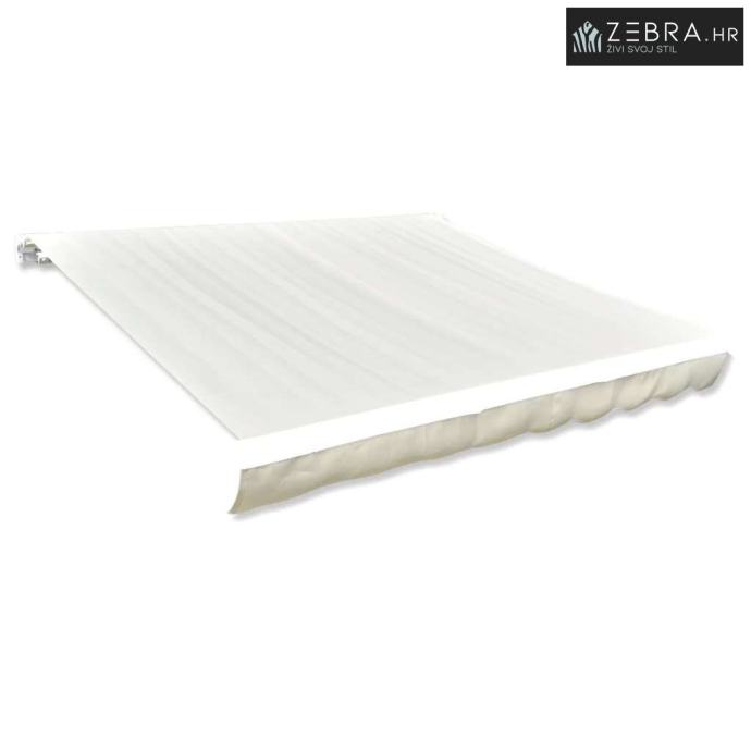 Platno je izrađeno od visokokvalitetnog poliestera, materijala poznatog po svojoj izdržljivosti i otpornosti. Ključne značajke ovog materijala uključuju otpornost na UV zrake i blijeđenje, što znači da će vaša tenda zadržati svoju krem boju i estetski izgled čak i nakon dugotrajnog izlaganja jakom suncu. Visoka kvaliteta poliestera osigurava dugotrajnost i pouzdanu zaštitu od različitih vremenskih uvjeta.